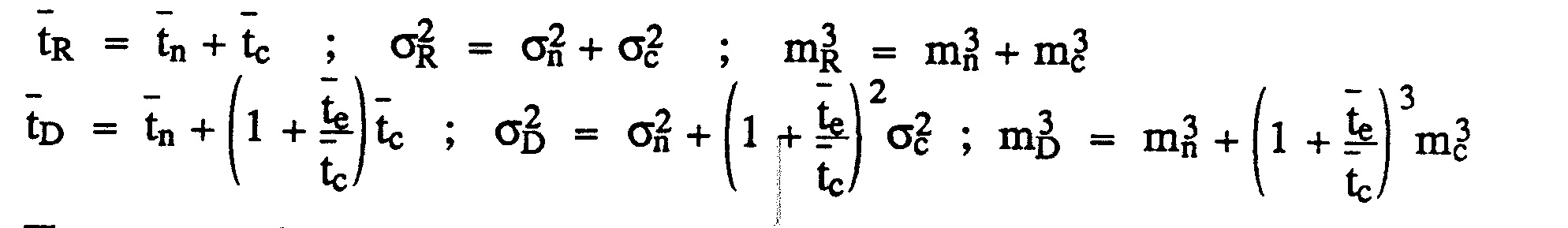 Let h(t) be the probability density function of transit times. The following equations relate the moments (mean transit time, t, variance, σ2 , and skewness, m3 ) of the capillary function, hc (t); of the extravascular function, he(t), and of the noncapillary function, hn(t) to the moments of the venous concentration versus time curves for a vascular reference indicator, CR(t), and a flow-limited diffusible indicator, CD(t), following a bolus injection of the indicators upstream from the lung: